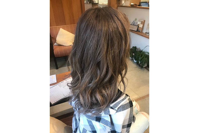 もともと髪のベースが明るいので落ち着いたベージュアッシュに(^^♪